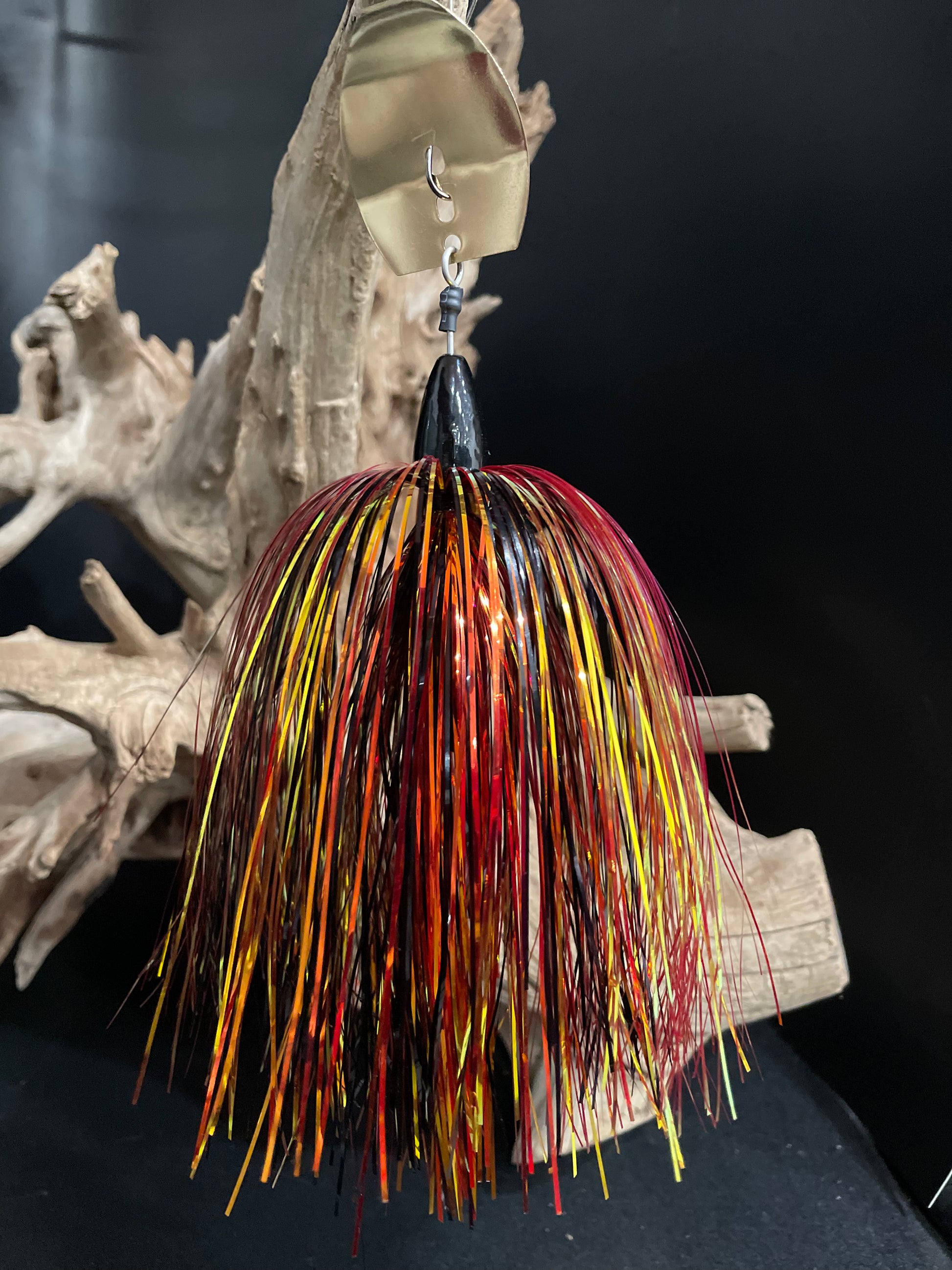 The Voodoo Heat is an expertly crafted fishing lure designed specifically for Pike and Muskie. Its unique colour combination of gold, bronze, orange, and red, paired with a weight of 1 oz and a #9/0 replaceable hook, makes it irresistible to these species. With a proven track record of success, this Chatterbait is a must-have for any angler looking to catch the big ones.